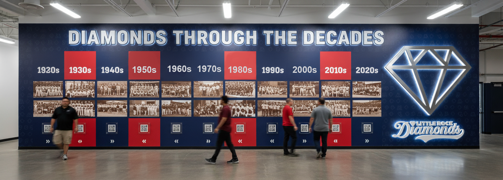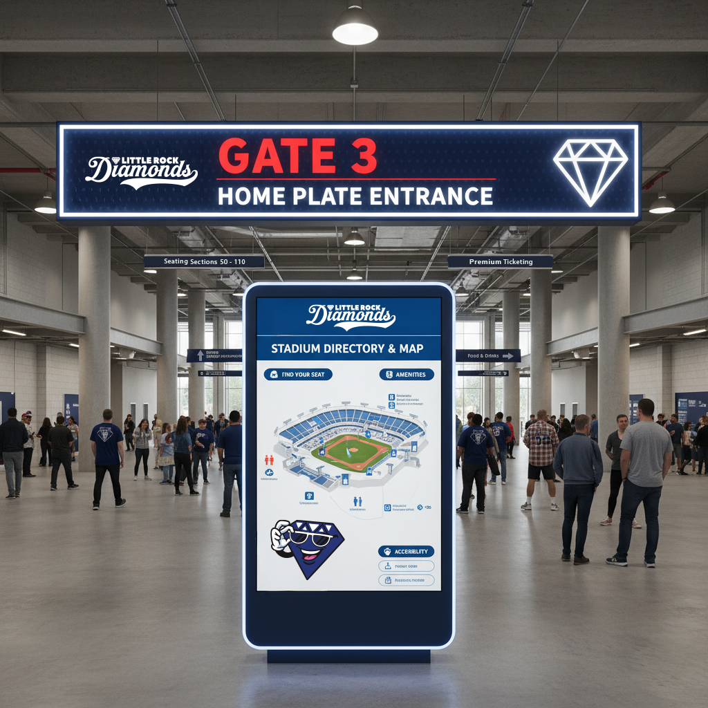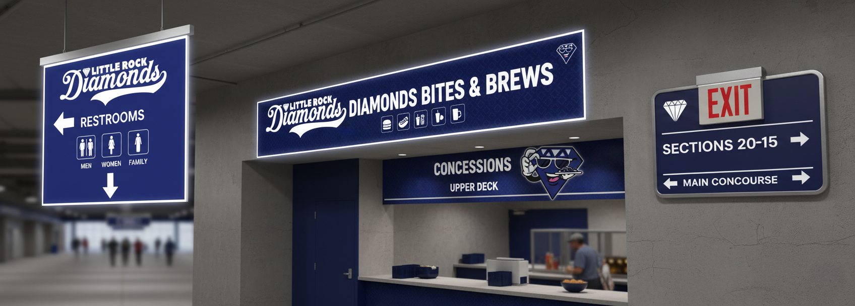 This project explores the development of a cohesive visual identity and wayfinding system for the Little Rock Diamonds baseball team. The design focuses on creating a clear, engaging experience through bold typography, a modernized logo system, and a structured color palette.